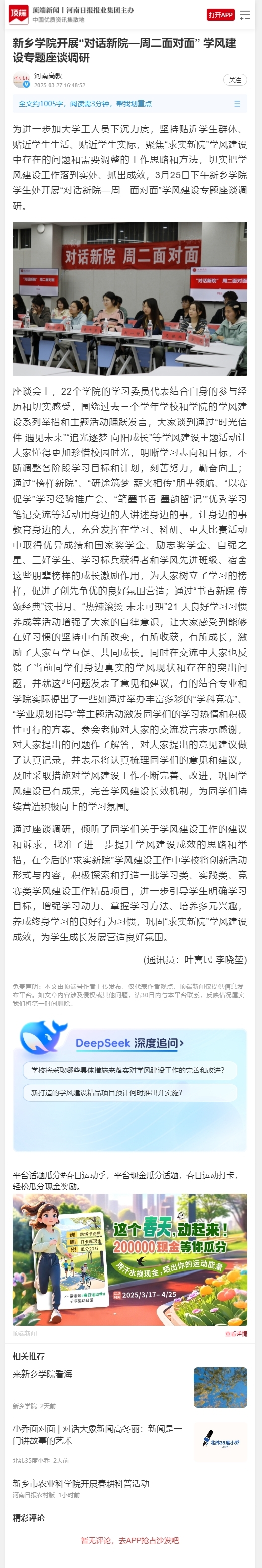 上一条:河南日报客户端报道必赢官网学风建设创新 下一条:河南教育宣传网报道必赢官网开展“对话新院—周二面对面” 学风建设专题座谈调研