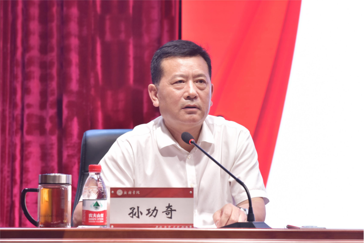 孙功奇作了题为《重实践、建新功,在教育强国建设中担当作为》的主题教育专题党课。主要从三个方面全面深刻地引导和启发大家深入学习、深入思考,推动锚定目标任务,提升主题教育实效。一是深刻理解把握中国式现代化理论体系。从现代化概念及中国式现代化的发展历程、现代化的一般特征和中国式现代化的主要特征、新时代十年的伟大实践、中国式现代化的发展前景梳理阐述了中国式现代化走得通、行得稳,是强国建设、民族复兴的唯一正确道路;二是深入阐述教育强国在推进中国式现代化中的基础支撑和重要引擎作用。建设教育强国是全面建成社会主义现代化强国的战略先导;建设教育强国是实现高水平科技自立自强的重要支撑;建设教育强国是促进全体人民共同富裕的有效途径;建设教育强国是以中国式现代化全面推进中华民族伟大复兴的基础工程。三是学习贯彻习近平总书记关于教育的重要论述,为教育强国建设和中国式现代化河南实践贡献力量。要坚持举旗定向,培根基、育新人;要围绕高校职能,锻长板、补短板;要勇于改革探索,增动力、激活力;要聚焦校园稳定,守底线、防风险。